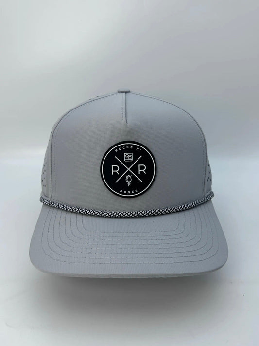 Gray Golf Snapback Hat with Rubber Logo and Rope