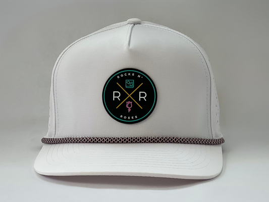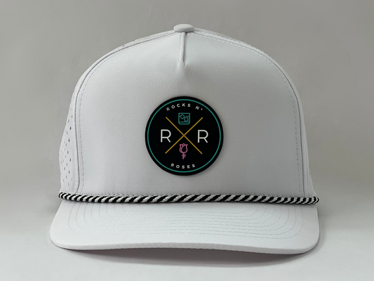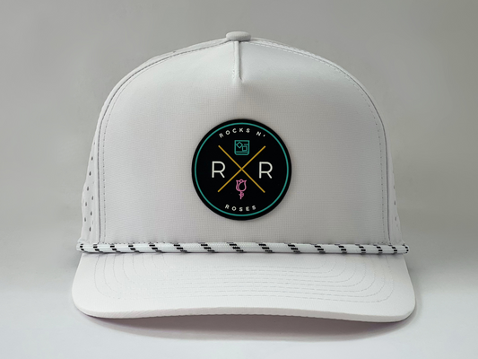 Tropical Sunset White Golf Hat – White Rope with Black Diagonal Accents