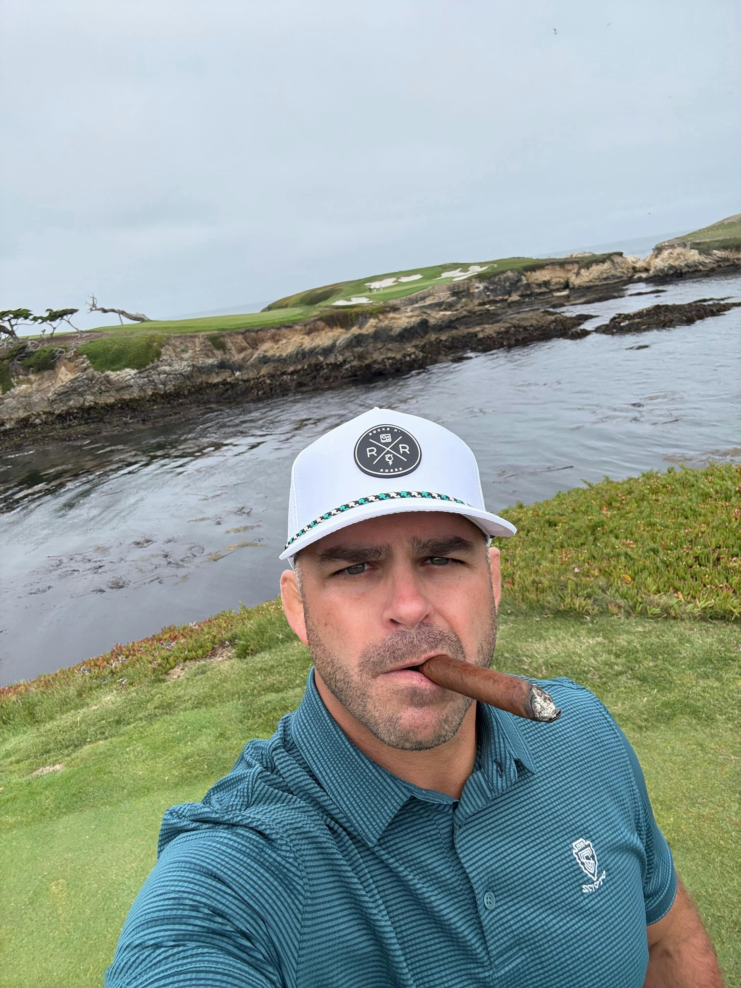 Accented with a bold black, white, and teal rope and our signature Rocks N’ Roses rubber logo, this hat blends course-ready utility with street-smart style.